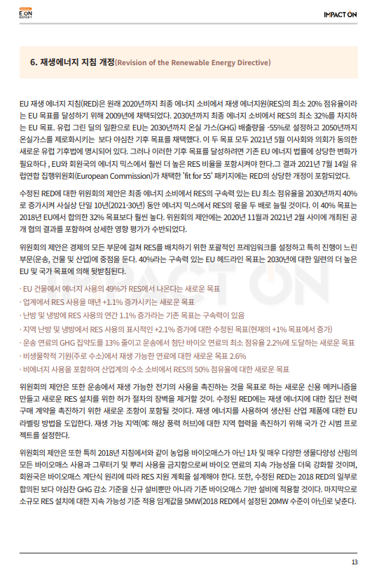 이 보고서는 지속가능보고지침(CSRD), 탄소국경조정매커니즘(CEBAM), 재생에너지지침 등 28개 주요 법안을 한 번에 정리했습니다.