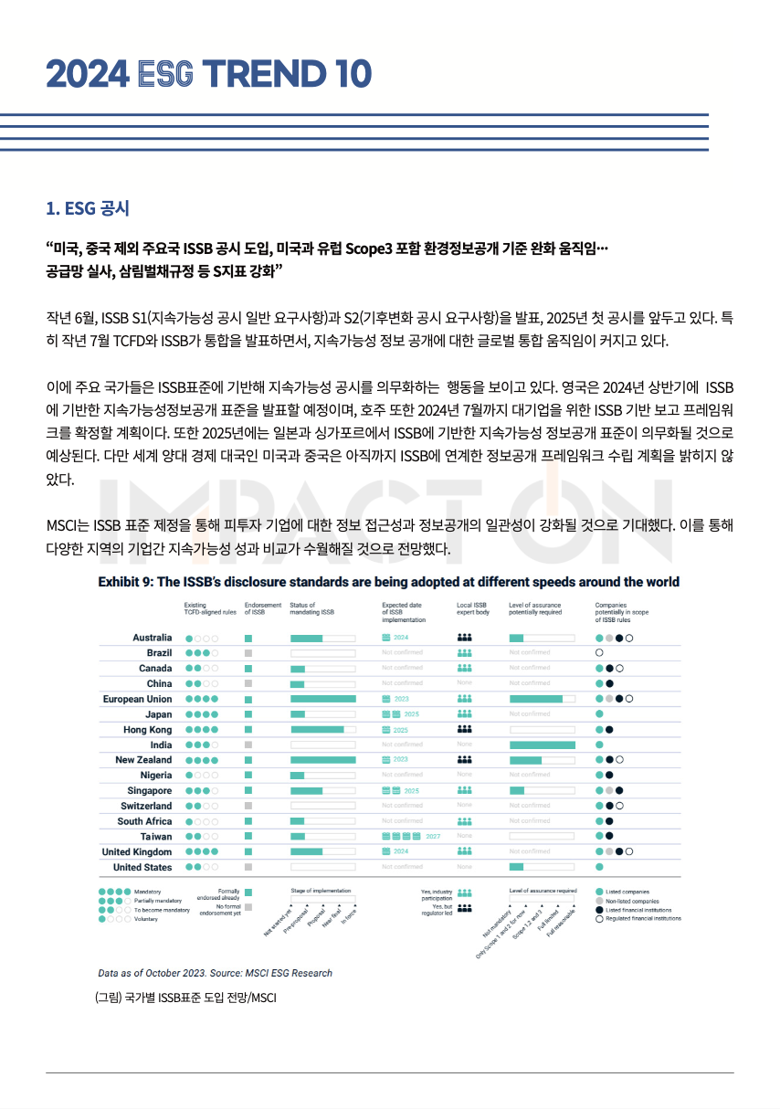 지난 한 해 ESG 흐름을 돌아보면서 2024 ESG 트렌드를 담은 보고서 입니다. ESG 공시, 정책, 투자, 기후테크, 에너지전환, 그린워싱 등 10가지 핵심 트렌드를 기반으로 올 한 해 ESG 동향의 맥을 짚을 수 있을 것입니다.