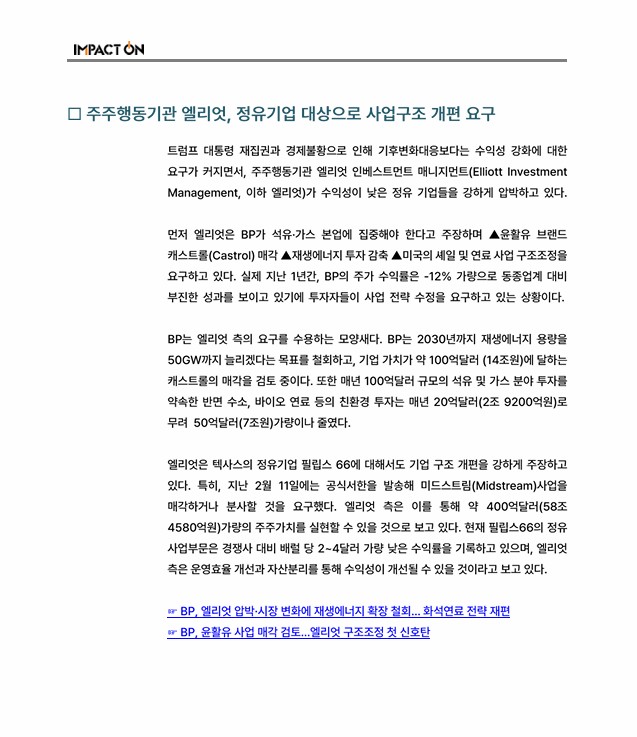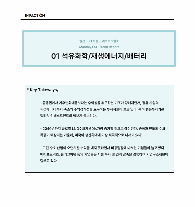 석유화학/재생에너지/배터리, 반도체/IT/철강/조선, 자동차, 기후테크 및 순환경제 등 4개 주제에 대한 ESG 트렌드 내용을 정리했습니다.