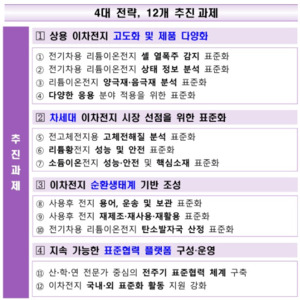 ◆ 데일리 ESG 정책_25.11.14.1. 이차전지 표준화 전략 발표산업통상부 국가기술표준원(원장 김대자, 이하 “국표원”)은 11월 13일(목) ‘K-배터리 표준화 포럼’을 개최하고, 이차전지 분야 제조강국, 차세대 글로벌 시장 선점 및 순환경제 활성화 지원을 위한 「이차전지 표준화 전략」을 발표했다.K-배터리 표준화 포럼을 구성하는 국내 산, 학, 연 전문가들을 통해 마련된 이번 전략은 상용, 차세대 및 사용후 이차전지 분야에서 우리나라 주도로 ‘30년까지 국제표준 9종 개발, 국가표준 10종 및 단체표준 6종을 제정할 구체적