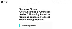 1. 아마존이 지원하는 엑스에너지, 첨단 원자로 수요 위해 7억달러 조달엑스에너지(X-energy)가 시리즈 D 라운드에서 7억달러(약 1조원)를 유치했다고 24일(현지시각) 밝혔다. 확보된 자금은 아마존과 다우를 대상으로 하는 첨단 소형 모듈형 원자로(SMR) 프로젝트 배치에 투입될 예정이다.이번 라운드는 트레이딩 회사 제인 스트리트가 주도했으며, ARK 인베스트, 갈바나이즈, 후드 리버 캐피탈 매니지먼트, 포인트72, 리브스 자산 매니지먼트, XTX 벤처스 등이 새로 참여했다. 올해 초 아마존의 ‘기후 서약 기금’이 주도한 7억