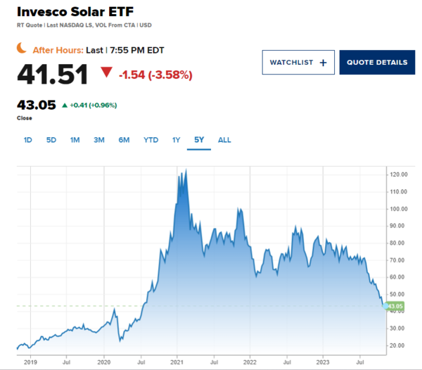 지난 2020년, 인베스코 태양광 ETF가 연간 수익률 238%를 기록하며 미국 전체 ETF 중 가장 높은 성과를 거두었던 것을 고려하면 상황이 완전히 뒤바뀐 것이다.