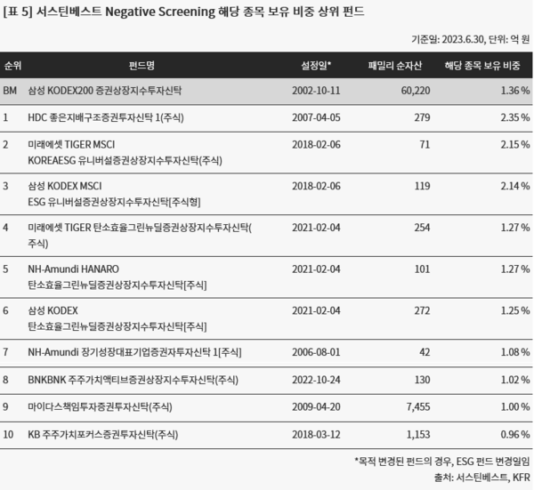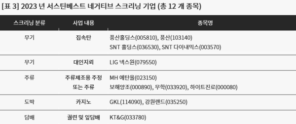 네거티브 스크리닝 전략…ESG 점수에 직결되지는 않아