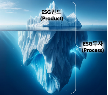 우리가 ‘ESG펀드’ 만 쳐다본다면 개인투자자의 ESG투자 동향만 주로 파악하게 되는 것이며, ESG펀드에 자금이 들어오고 나가는 것만 보면서 ESG투자 시장을 가늠하려고 한다면 빙산의 일각만 보고 빙산의 크기를 짐작하는 것과 다를 바 없다.