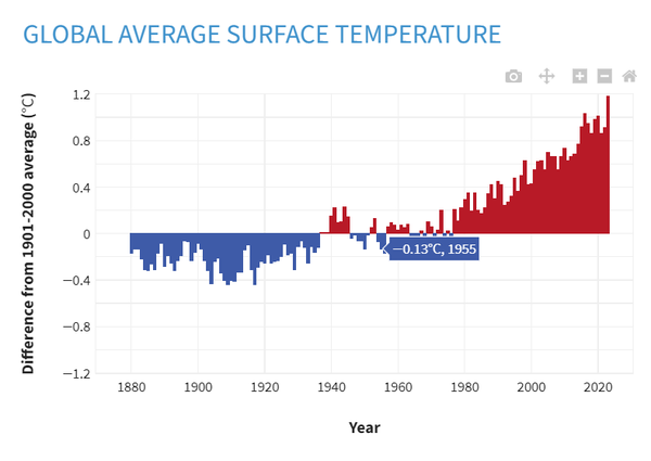 지구의 온도는 1982년 이후 10년당 섭씨 0.20도씩 상승해왔다. 1982년 이후 온난화 속도는 3배 이상 빠르다. 지구 역사상 가장 더운 10년은 모두 지난 2014년부터 2023년 사이 발생했다.