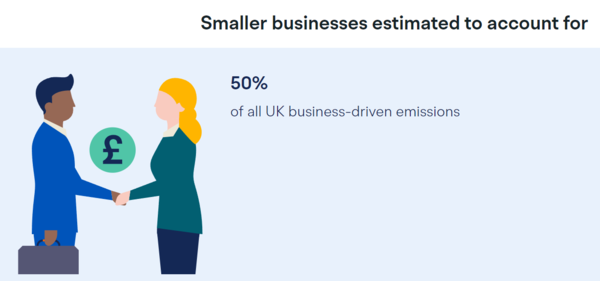 한편, 영국은 중소기업 비중이 민간 기업의 99% 이상이며, 가정 외의 영역에서 발생하는 배출량의 절반(44%)가량을 차지하고 있다. 그만큼 중소기업의 배출량 감축이 국가 전체의 온실가스 감축목표(NDC)를 달성하는 데 중요하다. 통계상 단기 목표가 달성되면 2억8000만 톤의 탄소배출을 방지할 수 있다.