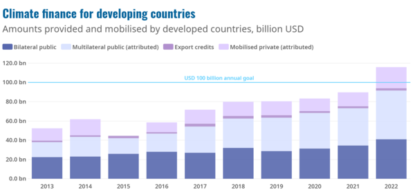 선진국들은 2009년 덴마크에서 열린 COP15에서 개도국에게 2020년까지 매년 1000억달러(약 137조8800억원) 상당의 기후 재원을 약속했으나, 경제협력개발기구(OECD)에 따르면, 2년 늦은 2022년이 되어서야 연간 기후 재원이 1000억달러(약 137조8800억원)에 도달한 바 있다.