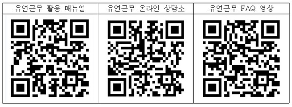사업장의 개별‧구체적인 유연근무 활용 도입 궁금증과 관련해서는 ‘유연근무 온라인 상담소’(www.유연근무종합안내.kr)에서 문의할 수 있으며, 다른 기업은 어떻게 유연근무를 도입‧활용하고 있는지 궁금한 기업은 ‘유연근무는 처음이라, 유연근무 우수기업이 알려주는 성공비법’ 영상을 통해 먼저 도입한 기업이 경험을 바탕으로 해주는 다양한 얘기를 들을 수 있다.