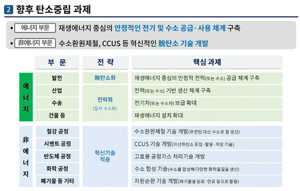 김 센터장은 “제조업 공통의 문제”라며 “탄소 배출을 줄이는 기업이 경쟁력을 얻긴 할 것이지만 같은 업종에 속한 한 기업이 배출량을 줄이면 같은 업종 다른 기업도 배출을 줄여야하기에 쉽지 않은 문제”라고 답했다. 또한 ▲수소환원제철 기술 개발(철강 업종) ▲CCUS 기술 개발(시멘트 업종) ▲고효율 공정가스 처리기술 개발(반도체 업종) ▲수소 합성 기술(화학 업종) ▲자원순환 기술(폐기물 업종) 등 굵직한 기술 개발을 위해 정부가 최대한 지원해줘야 한다고 답변했다.