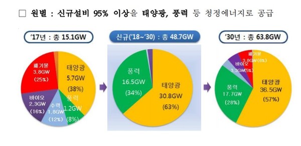 문재인 정부는 2017년 '재생에너지 3020' 이행계획을 제출하며 2030년까지 재생에너지비율을 20%까지 끌어올리겠다고 밝힌 바 있다. 2030년까지 태양광 38%에서 63%로 확대, 풍력을 8%에서 34%로 약 4배 이상 확대한다는 계획이다.