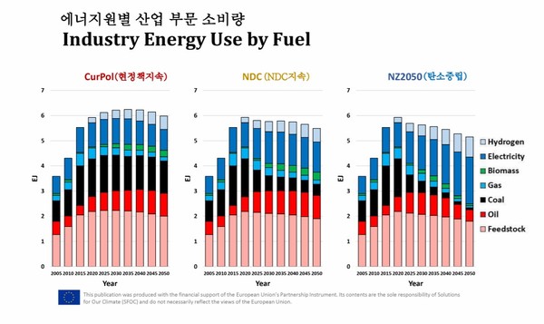 석탄 퇴출, 재생에너지 증가 등으로 가장 큰 변화를 맞이할 분야는 산업인 것으로 알려졌다. 석탄과 가스 등 화석연료가 줄어들고 대신 재생에너지와 수소 소비가 빠르게 증가하는 것으로 나타났다. 엄 교수는 “석탄과 LNG 퇴출 등을 통해 전력 부문 탈탄소화가 이뤄져 최종 소비자가 재생에너지를 소비하게 되는게 탄소 중립 달성의 핵심”이라며 “더불어 바이오 매스와 탄소 포집 기술도 2050년 탄소 중립을 좌우하는 중요한 수단 중 하나”라고 설명했다.