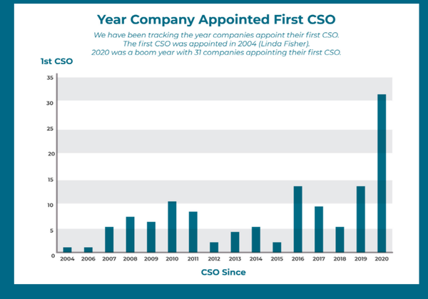 경영진 검색업체 위너브(Weinreb) 그룹에 따르면, 2011년 29명에 불과했던 미국 주요 상장기업 CSO는 2021년 95명으로 늘어났다. 95명 중 3분의 1 가량이 지난해 해당 회사 최초의 CSO였다. ESG에 관해 이해관계자들의 요구사항이 늘어남에 따라 이에 대응할 수 있는 전문 책임자가 필요한 것이 그 이유로 분석되고 있다.