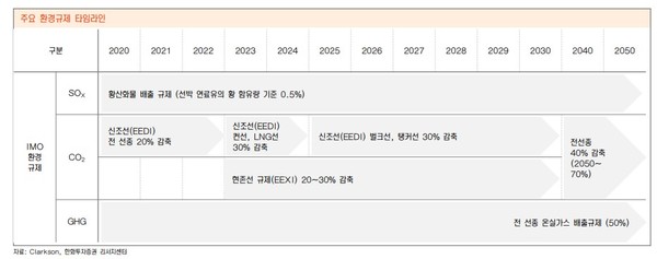 호재는 더 있다. 올해 6월 국제해사기구(IMO) 해양환경보호위원회(MEPC)는 76차 회의에서 2023년부터 2026년까지 연간 2%씩 탄소를 감축하는 안을 채택했다. IMO는 2008년 대비 2050년까지 선박의 탄소 배출량을 70%, 온실가스 배출량을 50% 줄이겠다는 목표를 세웠는데 이번 감축안이 1차 계획이다.
