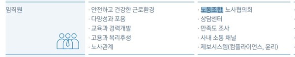 올해 지속가능경영보고서에선 무노조 경영을 철회하면서 "대한민국 헌법에서 보장하고 있는 노동3권을 존중하기 위한 활동을 전개하고 있다"고도 말했다. 구체적인 활동 내역으로 지난해 8월 노사관계 자문그룹을 신설한 것과 최고경영진을 포함한 모든 임직원 대상으로 노동3권 보장 관련 예방교육 등이 언급됐다. 또 "노동조합의 원활한 교섭을 지원하기 위해 노조에 사무실을 제공하고 조합원들에게 교섭에 필요한 시간을 보장해주는 등 성실히 교섭에 임하고 있다"고 강조했다.