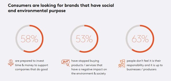 응답자의 53%는 "실제로 환경과 사회에 부정적인 영향을 미치는 제품과 서비스 구매를 중단한 경험이 있었다"고 답했으며, 58%는 "환경 문제로 인해 개인적으로 영향을 받는다"고 응답했다. 또한 19%는 지속가능성 측면에서 본인이 적극적인 소비자라고 인식하고 있었으며, 30%는 환경 등 지속가능성 이슈에 적극 참여하고 있다고 답했다. 한편 31%는 본인이 지속가능성 문제에 소극적으로 대응하고 있다고 생각하고 있었으며, 19%는 지속가능성을 회의적으로 보고 있다고 답했다.