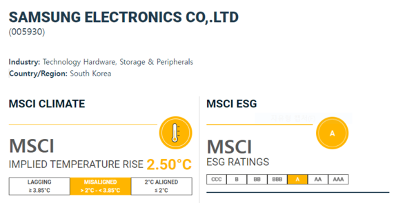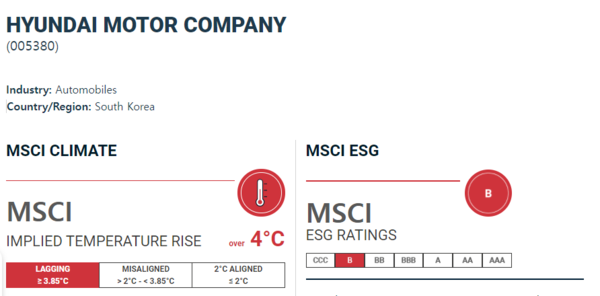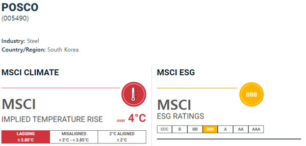 ‘임팩트온’은 MSCI 웹사이트를 통해 국내 기업의 추정온도 상승과 경쟁기업 등을 비교해보았다.