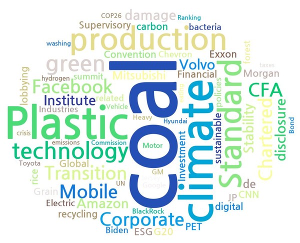 니혼게이자이신문, 베인앤컴버니, 데이터분석기업 아스타뮤제는 세계 주요 기업의 탈석탄기술 및 특허의 가치를 분석한 ‘탄소삭감 임팩트스코어 글로벌 순위’를 발표했다. 탈석탄 기술 세계 1위기업은 도요타자동차였다. 연료전지차, 수소, 전기차 등에서 높은 평가로 232만점을 받아, 지난해 1위였던 GE를 눌렀다. 2위 GE는 탄소의 지층매장, 고효율화력발전 등에서 212만점을 받았고, 3위 미쓰비시중공업은 이산화탄소 흡수분리, 지층매장 등 CCUS(탄소포집) 등에서 140만점을 받았다. 4위는 지멘스, 현대차는 5위였다. 20위 중 11곳이 일본 기업, 미국 5개, 한국 2개 순이다. 포스코는 16위에 올랐다.