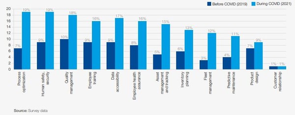 특히, 조사에 참여한 중소기업은 코로나19 가운데 디지털 기술을 도입하고 있는 분야로 작업 최적화(19%)와 근로자 안전과 보안(19%)을 가장 높게 꼽았다. 또 응답자의 18%는 품질관리, 17%는 데이터 접근성, 16%는 근로자 교육에 디지털 기술을 활용하고 싶다고 답했다.