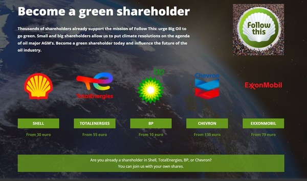 그런데 빅오일사 주주총회에 행동주의 투자자들이 ‘파리기후변화협약에 부합한 기후 대응안을 마련해 이행하라’는 내용의 결의안을 제출하겠다고 밝혀, 기후대응 안건이 회의의 주요 이슈로 떠오를 전망이다. 그 중심에는 네덜란드 ESG 행동주의 기관인 ‘팔로우디스(Follow This)’가 있다.