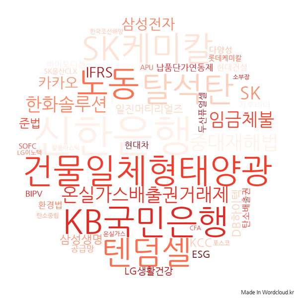 <한경ESG>가 ‘2022 한국의 기후 리더’를 선정했다. 선정 결과에서 나타난 가장 큰 특징은 기존에 기후 변화 대응이 우수하다고 평가받은 주요 대기업 삼성전자·SK하이닉스·포스코 등이 모두 탈락했다는 점이다. 올해 ‘한국의 기후 리더’ 1위는 2018~2020년 온실가스 배출 집약도가 48.91% 감소한 현대건설이 차지했고. KCC(-43.95%)가 2위에 올랐고, LG이노텍(-35.00%)과 DB하이텍(-31.66%)이 뒤이었다. 지난 3년 간의 온실가스 배출 집약도 감소율로서, 친환경 기술혁신을 위한 노력을 평가했다. 업종별로 보면 금융은 삼성생명(5위, -25.99%)이, 물류는 한진(7위, -23.93%)이, 생활 소비재는 LG생활건강(10위, -18.72%)이, 식음료는 하이트진로(11위, -18.58%)가 선두에 올랐다. 100만 톤 이상 온실가스를 배출한 기업 중에서는 현대차(9위, -20.97%)와 LG전자(14위, -16.48%)가 두각을 나타냈다.