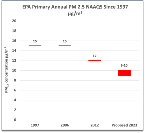 이번 규제안은 산업에서 배출되는 초미세먼지 배출량의 기준을 최대 세제곱미터(m3) 당 12마이크로그램(㎍)에서 9~10㎍사이로 강화한다. 또한 EPA는 연평균 미세먼지농도 기준을 12㎍/m3에서 8~11㎍/m3으로 조정할 것을 고려 중이라고 밝혔다. 현재 한국의 연평균 미세먼지농도 기준은 15㎍/m3다.