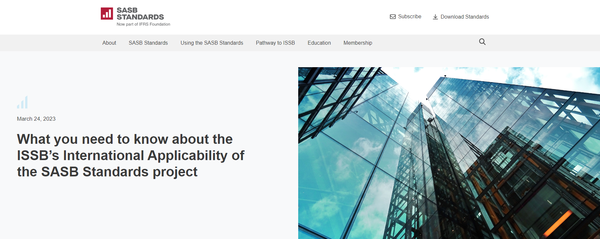 ISSB는 지난해 국제회계기준(IFRS)에 미 가치보고재단(Value Reporting Foundation)이 통합되면서 SASB 표준도 함께 인수했다. ISSB는 앞으로도 SASB 표준을 결정하고 관리해나갈 책임이 있다고 밝혔다.