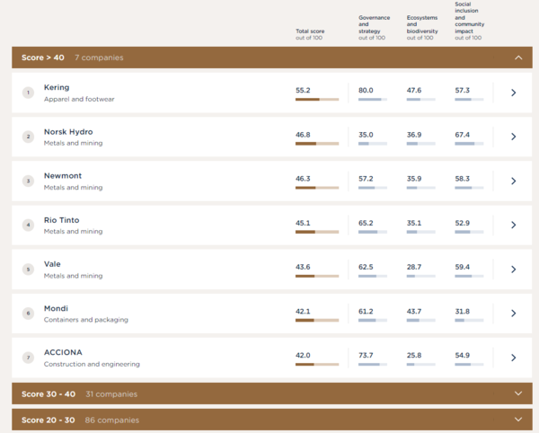 두 기업은 모두 공통적으로 수질 관리, 대기오염 물질 관리, 스코프 1과 2의 감축 부문에서는 높은 점수를 받았다. 그러나 삼림 벌채를 포함한 생태계 전환 및 복원에 대한 노력이 발견되지 않았으며, 기업의 영향을 받는 핵심 종을 공개하지 않았다는 점이 위기 요소로 지적되었다. 실제로 해당 기업들의 지속가능경영 보고서를 확인했을 때, 기후위기 대응 및 오염물질 배출 저감 노력에 비해 NbS를 포함한 생물다양성에 대한 노력은 발견하기 어려웠다.