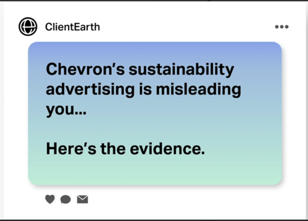 지난 2021년 정유업체 셰브론(Chevron)은 '항상 더 깨끗한 에너지(Ever-Cleaner Energy)'라는 표현을 사용해 자사의 친환경 활동을 홍보했다가 큰 곤욕을 치른바 있다. 이들은 전 세계에서 두 번째로 많은 탄소를 배출하는 기업이며, 재생에너지 분야의 자본 지출이 0.2%에 불과하지만 환경 표어를 사용해 자사의 친환경성을 대대적으로 홍보했기 때문이다. 이에 그린피스, 어스웍스(Earthworks) 등의 환경단체는 그린워싱 명목으로 미국연방거래위원회(FTC)에 정유업체 셰브론을 고발했다.