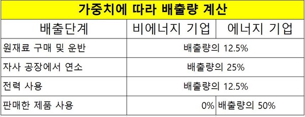 GSAM은 독자적으로 두 종류의 탄소 배출량 계산 방법을 적용한다. 하나는 공급망 전체의 탄소 배출량이다. 배출 범위는 ▲원재료 구매 및 운반 과정 ▲공장 배출량 ▲전력 사용량 ▲제품 사용 시 발생하는 배출량으로 분류된다. 제품을 사용할 때 발생하는 탄소 배출량은 석유, 가스, 석탄 등 에너지 기업에만 적용된다. 각각의 배출량에 일정 비율을 곱해 합계한 값을 배출량으로 계산한다.