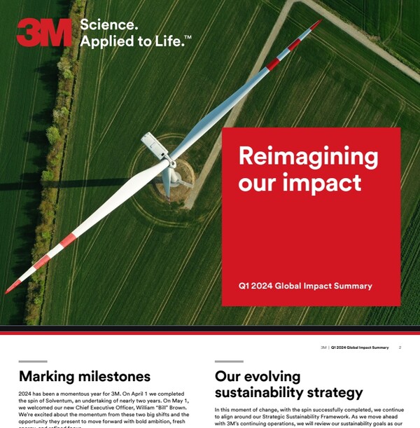또한 3M은 2024년 1분기 글로벌 임팩트 보고서에서 이미 스코프 1, 2 배출량을 48.6% 감축했으며, 2030년까지 52.6% 감축 목표를 설정했다고 발표했다.
