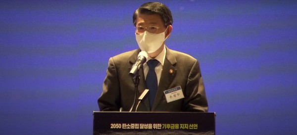 은 위원장은 ‘2050 탄소중립 달성을 위한 기후금융 지지 선언’에 참여해 이 같은 심정을 밝혔다. 그는 “지난 2017년부터 2019년까지 2년 동안 여러분이 기후 악당이라고 말하는 수출입은행장을 역임했었다”며 “이웃 나라에 탄소 금융을 줬다는 것도 잘 알고 있기에 거짓말할 필요가 없다"며 "오늘 이 자리는 덕담할 게 아니라 오히려 제가 들어야 하는 소리라고 느꼈다"고 밝혔다.