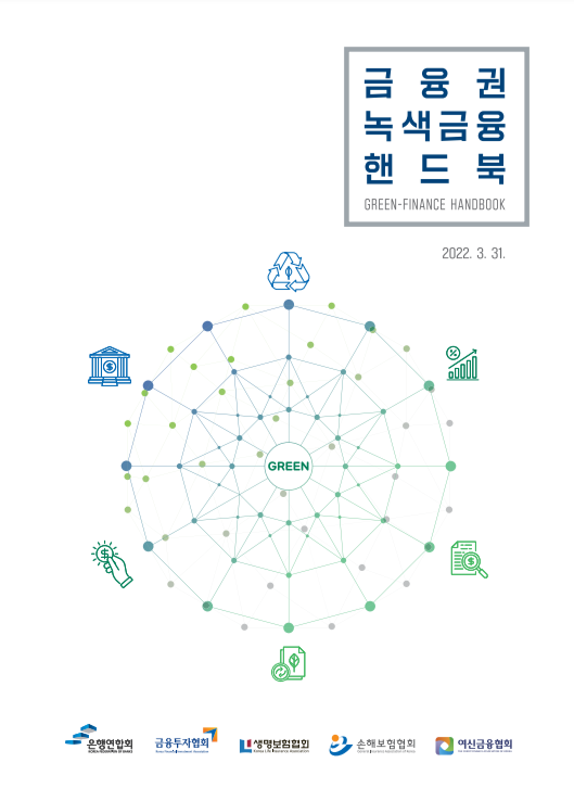 ‘금융권 녹색 금융 핸드북’ 최종본이 지난 31일 발간됐다. 녹색 금융 핸드북은 은행연합회, 금융투자협회, 생명보험협회, 손해보험협회, 여신금융협회 다섯 곳이 2021 녹색금융 추진계획’의 일환으로 녹색금융 업무 수행에 있어 고려할 사항을 정리한 참고자료다.