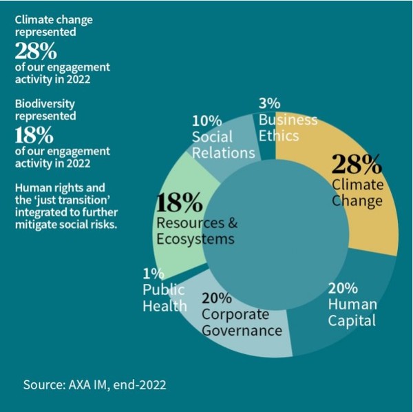 글로벌 자산운용사 악사(AXA Investment Managers, 이하 악사)는 지난 1년간 자산 관리가 크게 증가해 2022년 실시한 주주관여활동 건수가 2배 이상 증가했으며 올해도 기후와 생물 다양성 같은 이슈를 포함해서 지속적으로 증가할 것이라고 밝혔다고 ESG투데이가 10일(현지시각) 보도했다.